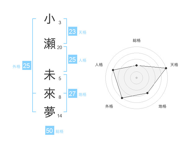 小瀬 未來夢さんを姓名の画数から五運を鑑定