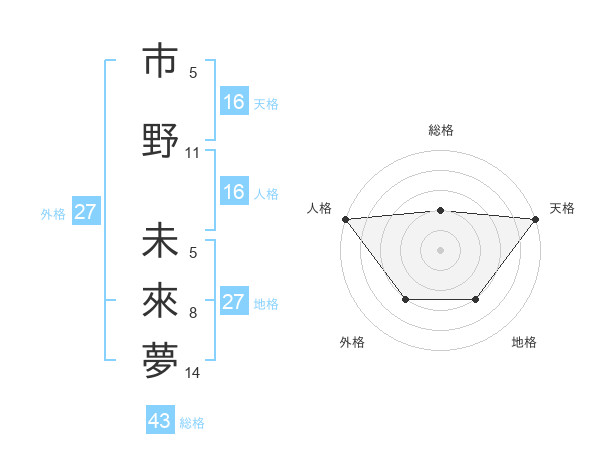 市野 未來夢さんを姓名の画数から五運を鑑定