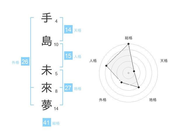 手島 未來夢さんを姓名の画数から五運を鑑定