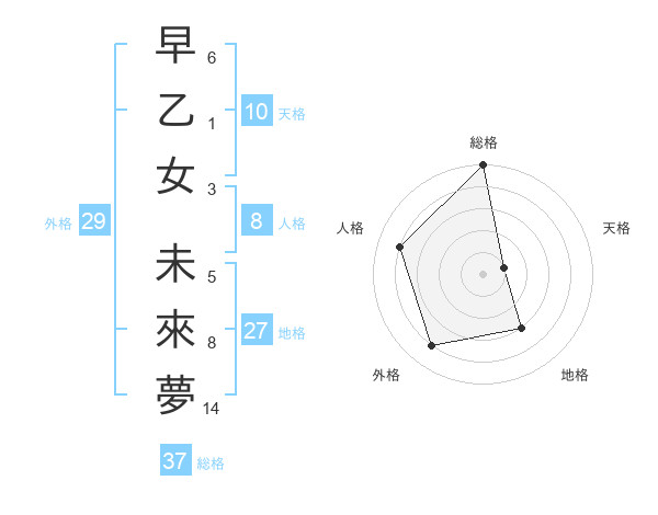 早乙女 未來夢さんを姓名の画数から五運を鑑定