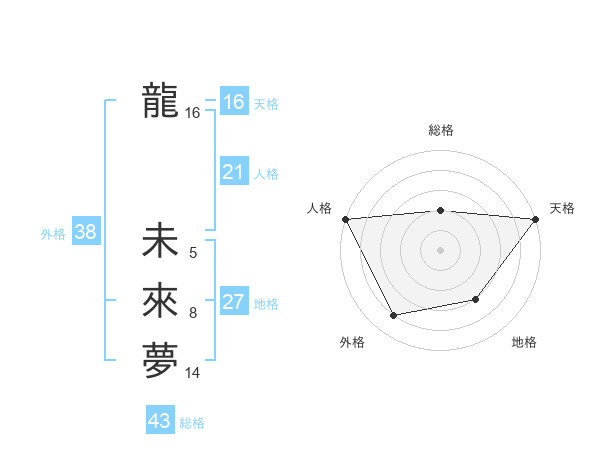 龍 未來夢さんを姓名の画数から五運を鑑定