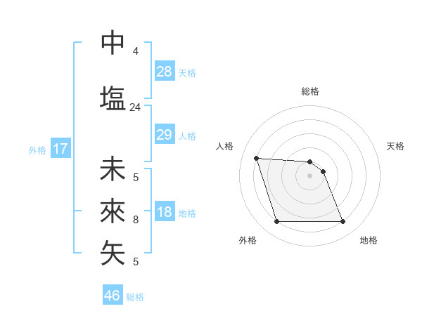 中塩 未來矢さんの外格は17画の4点!