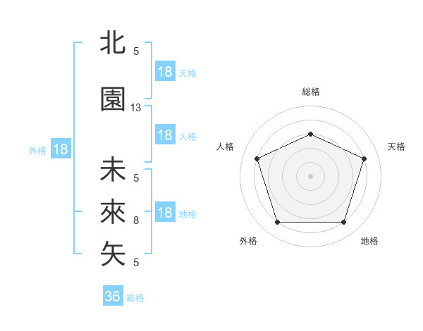 北園 未來矢さんを姓名の画数から五運を鑑定