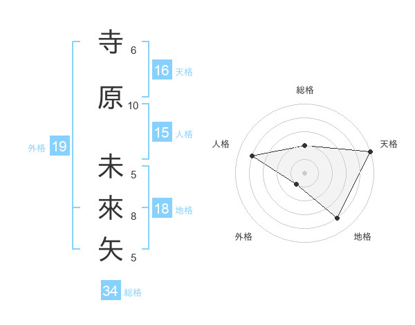 寺原 未來矢さんの天格は16画の5点!