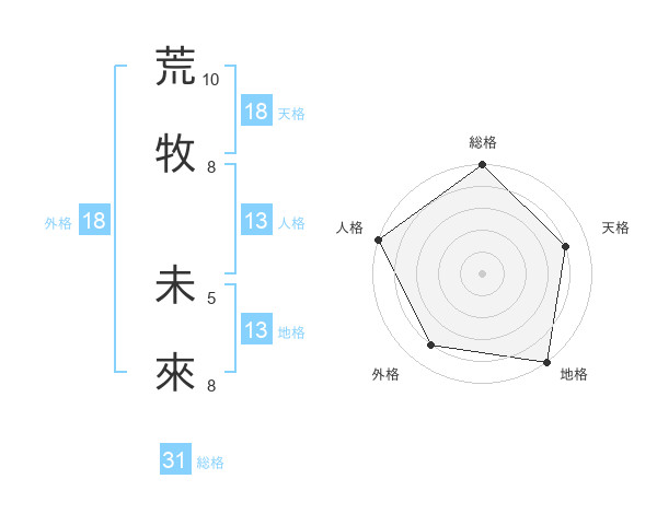 荒牧 未來さんの地格は13画の5点!