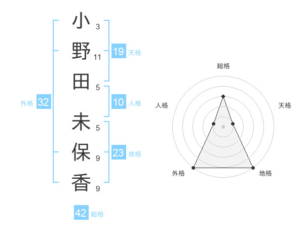 小野田 未保香さんを姓名の画数から五運を鑑定