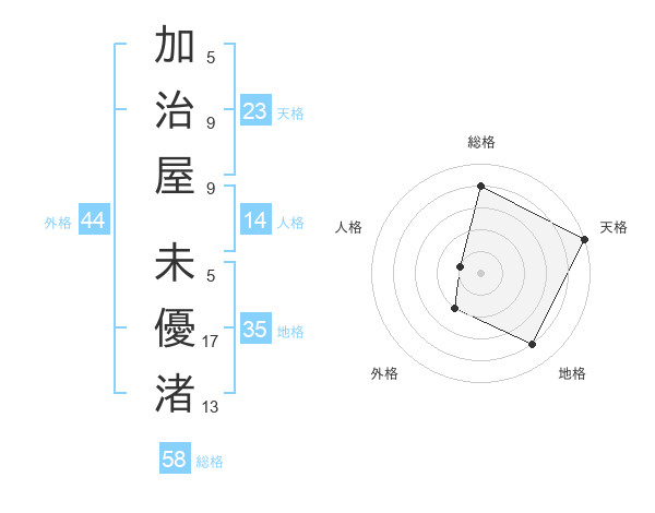加治屋 未優渚さんを姓名の画数から五運を鑑定