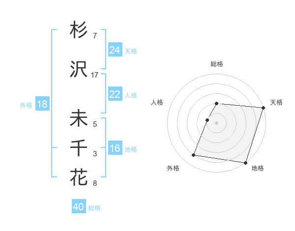 杉沢 未千花さんを姓名の画数から五運を鑑定
