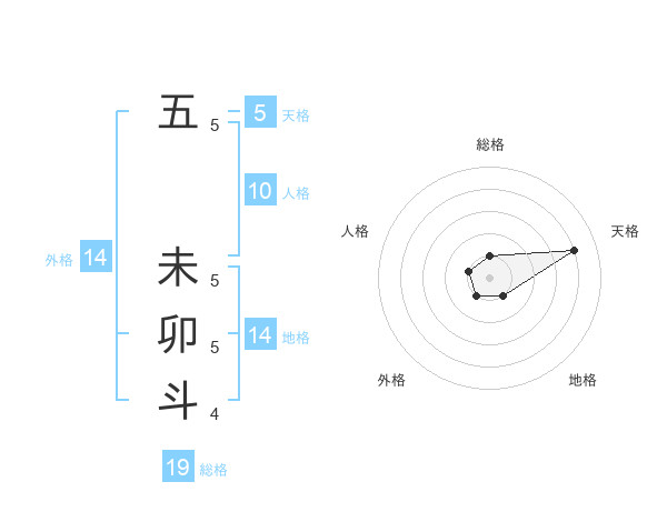 五 未卯斗さんの外格は14画の1点!