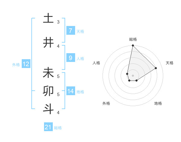 土井 未卯斗さんの総格は21画の5点!