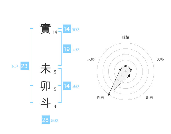 實 未卯斗さんの外格は23画の5点!
