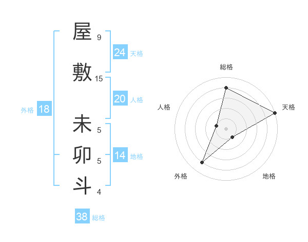 屋敷 未卯斗さんの総格は38画の4点!