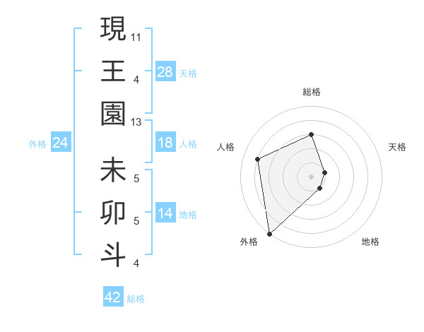 現王園 未卯斗さんを姓名の画数から五運を鑑定