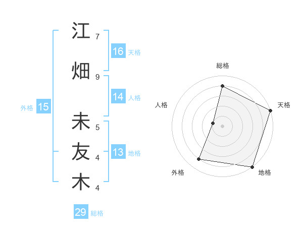 江畑 未友木さんの天格は16画の5点!