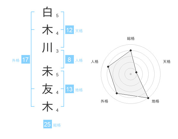 白木川 未友木さんを姓名の画数から五運を鑑定