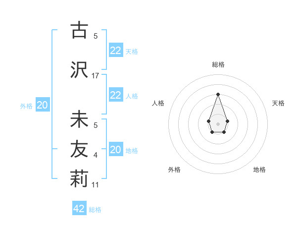 古沢 未友莉さんを姓名の画数から五運を鑑定