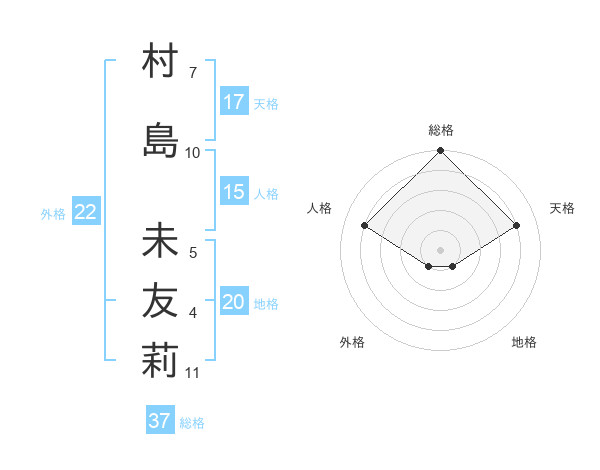 村島 未友莉さんを姓名の画数から五運を鑑定