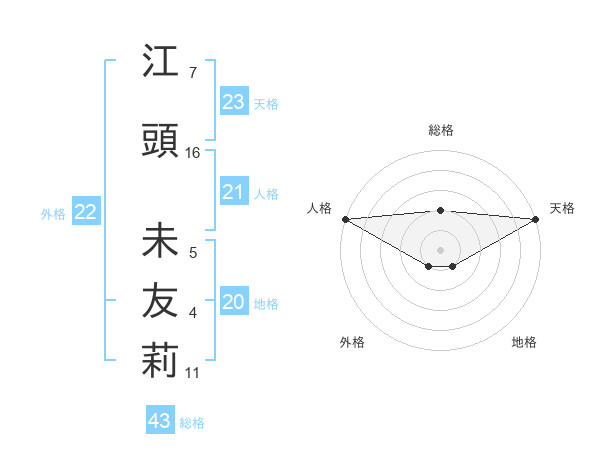 江頭 未友莉さんを姓名の画数から五運を鑑定