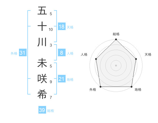 五十川 未咲希さんを姓名の画数から五運を鑑定