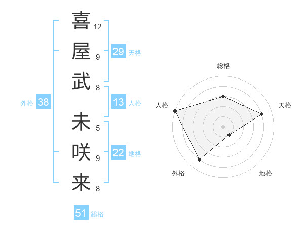 喜屋武 未咲来さんを姓名の画数から五運を鑑定