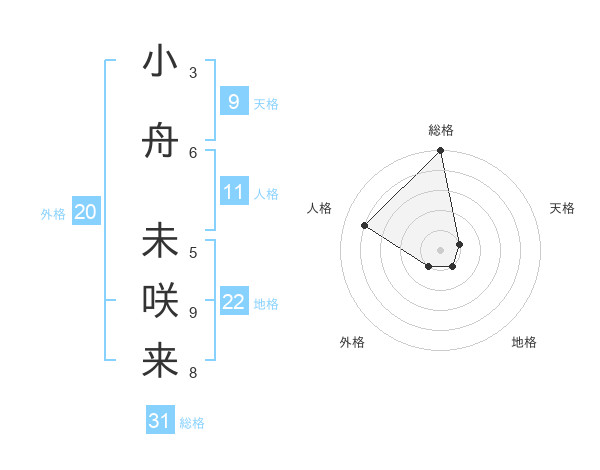小舟 未咲来さんを姓名の画数から五運を鑑定