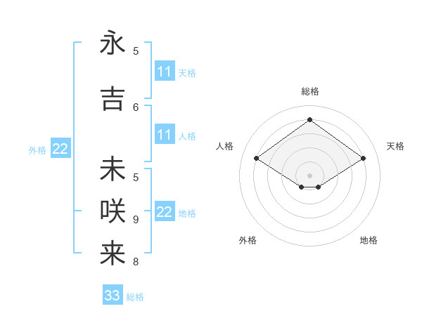 永吉 未咲来さんを姓名の画数から五運を鑑定