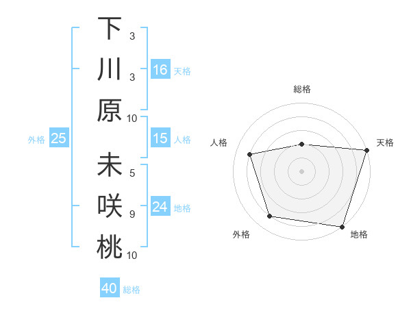 下川原 未咲桃さんを姓名の画数から五運を鑑定