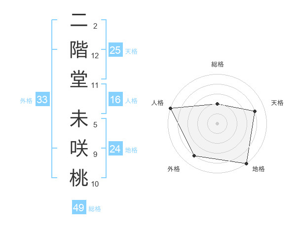 二階堂 未咲桃さんの天格は25画の4点!