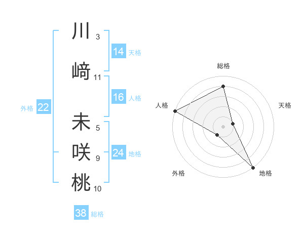 川﨑 未咲桃さんを姓名の画数から五運を鑑定