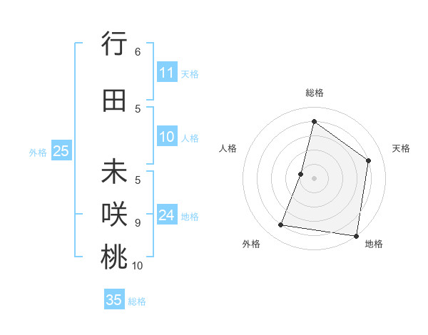 行田 未咲桃さんを姓名の画数から五運を鑑定