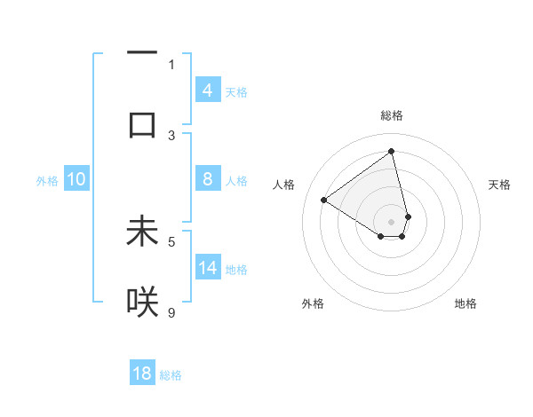 一口 未咲さんの総格は18画の4点!
