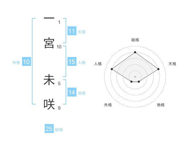 一宮 未咲さんを姓名の画数から五運を鑑定