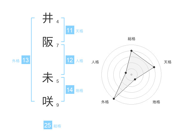 井阪 未咲さんの総格は25画の4点!