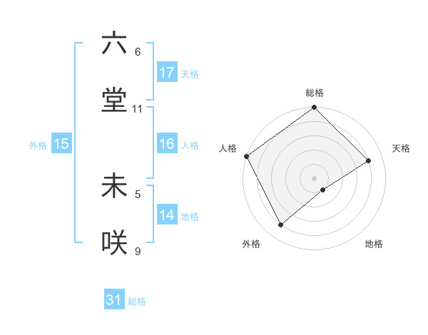 六堂 未咲さんを姓名の画数から五運を鑑定