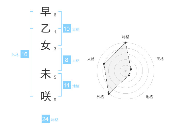 早乙女 未咲さんを姓名の画数から五運を鑑定