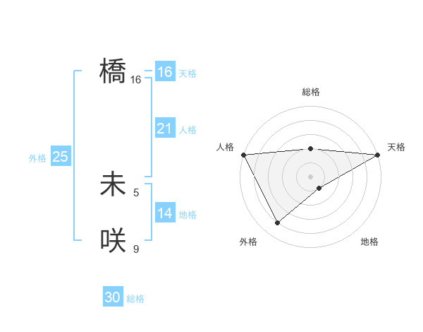 橋 未咲さんの天格は16画の5点!