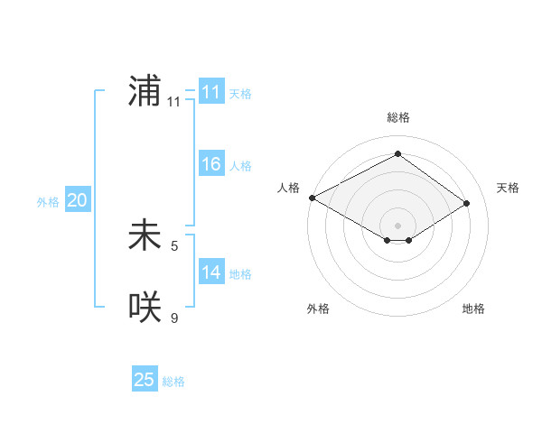 浦 未咲さんの総格は25画の4点!