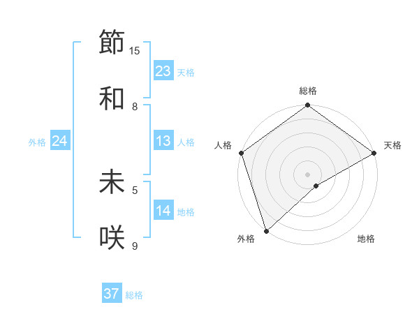 節和 未咲さんの総格は37画の5点!
