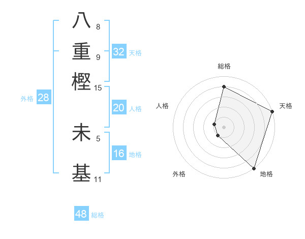八重樫 未基さんを姓名の画数から五運を鑑定