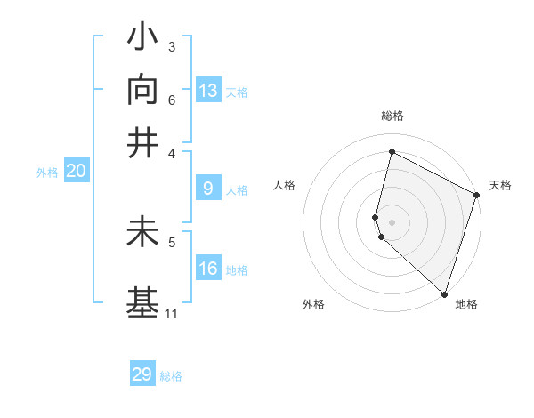 小向井 未基さんの総格は29画の4点!