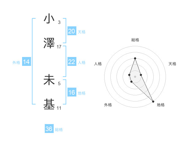 小澤 未基さんの天格は20画の1点!