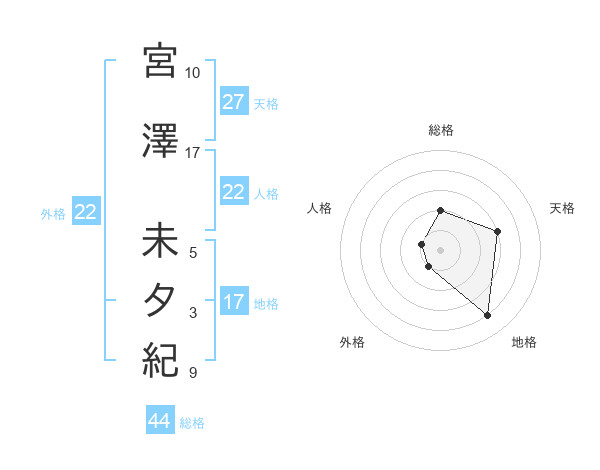 宮澤 未夕紀さんを姓名の画数から五運を鑑定