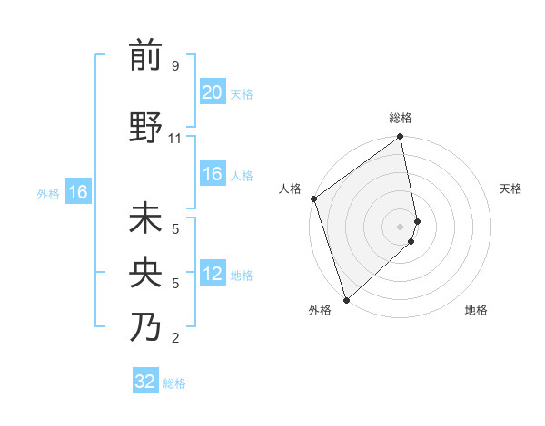 前野 未央乃さんの外格は16画の5点!