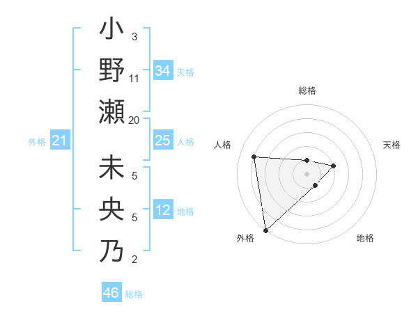 小野瀬 未央乃さんの外格は21画の5点