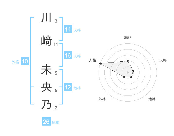川﨑 未央乃さんを姓名の画数から五運を鑑定