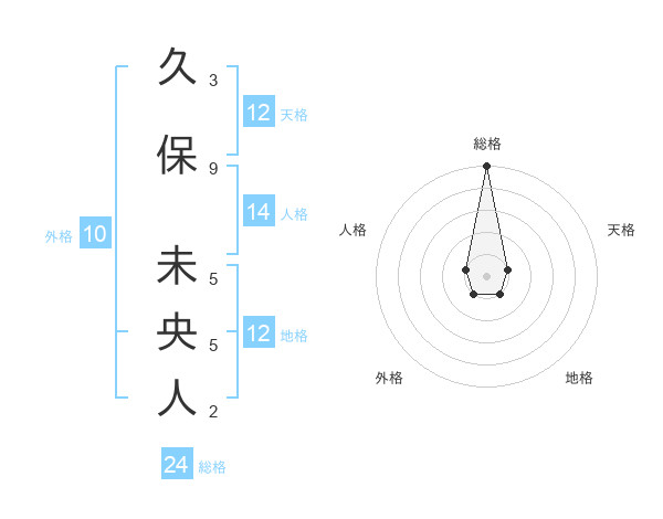 久保 未央人さんの総格は24画の5点!