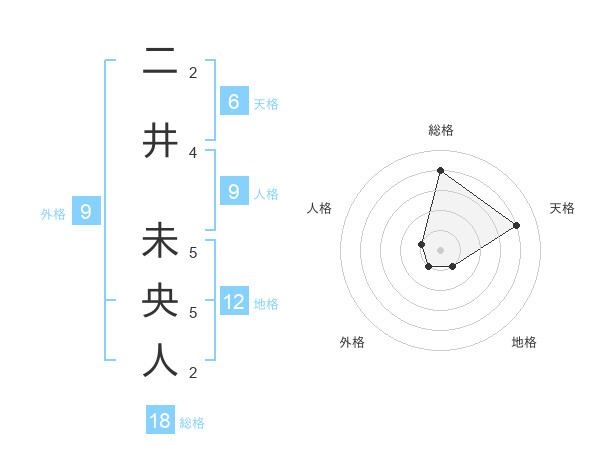 二井 未央人さんの総格は18画の4点!