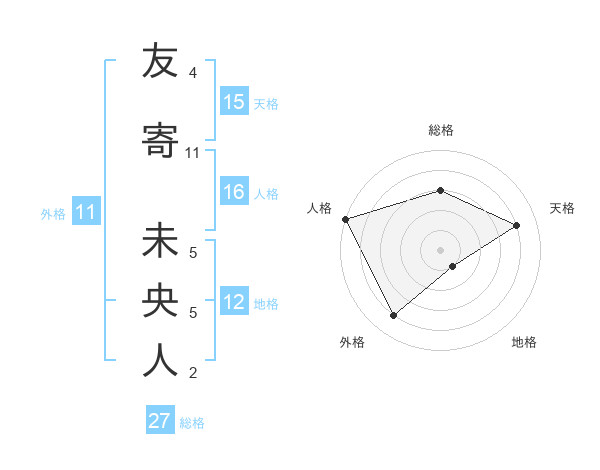 友寄 未央人さんを姓名の画数から五運を鑑定