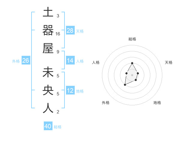 土器屋 未央人さんを姓名の画数から五運を鑑定