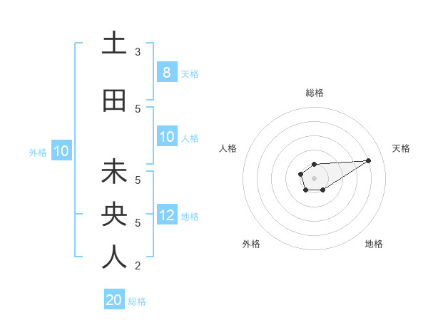 土田 未央人さんの総格は20画の1点!